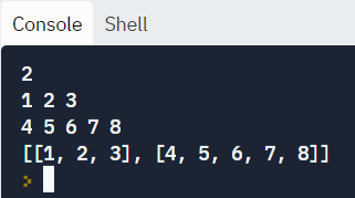 1-3 )특정 개수의 정수를 n줄 입력받아 2차원 리스트에 저장
